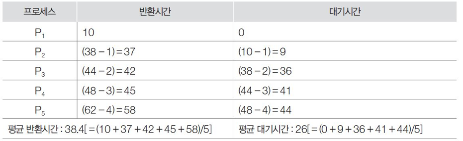 - μ₯κΈ° μ€ν νλ‘μΈμ€κ° μμΌλ©΄ λ€μ μλ λͺ¨λ νλ‘μΈμ€λ₯Ό λκΈ°μμΌ νκ· λκΈ° μκ°μ΄ κΈΈμ΄μ§λ©° μ΅μ μ λκΈ°μκ°μ΄ λ μ μλ€.