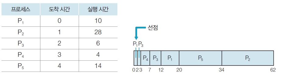 μ μ SJF μ€μΌμ€λ§μ μ€νμ€ μ€ν μκ°μ λ°λΌ λ€λ₯Έ νλ‘μΈμ€κ° νλ‘μΈμλ₯Ό μ μ ν μ μκ² νλ€.