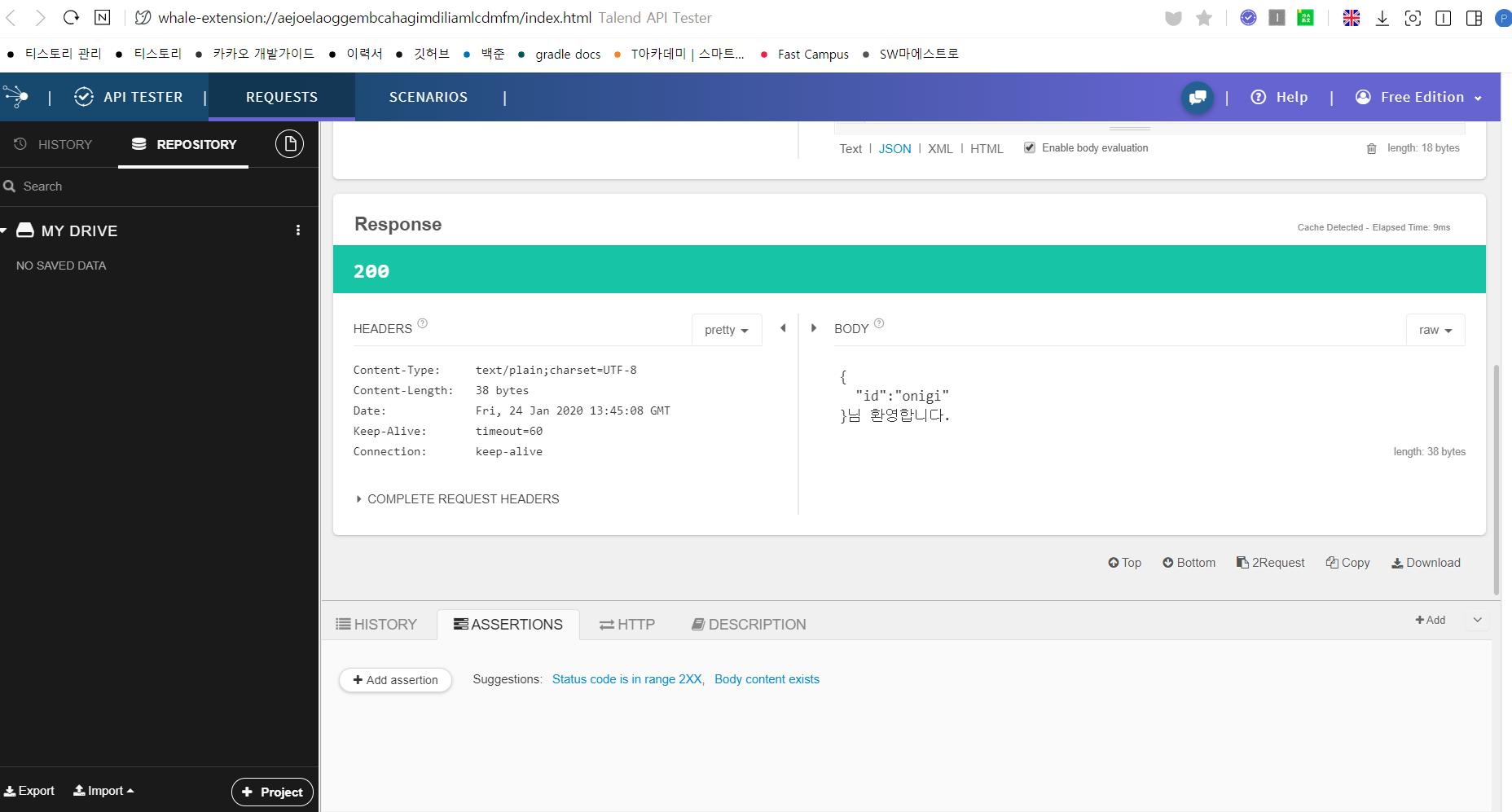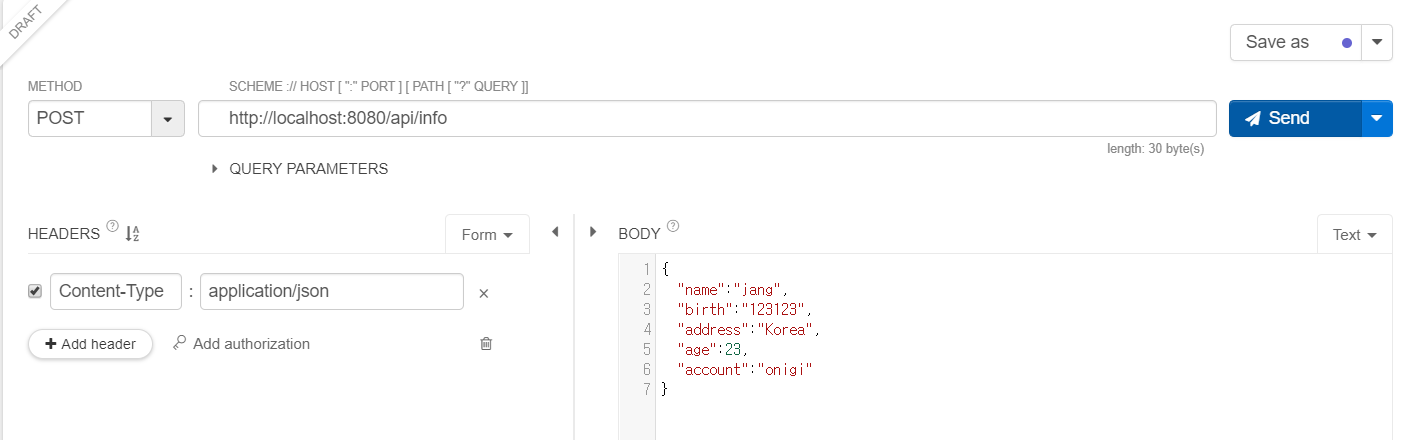 ๊ทธ๋ฆฌ๊ณ API-Tester์ ์ฌ์ฉํด์ ๋ฐ์ดํฐ๋ฅผ ๋ณด๋ด๋ณด๋ฉด