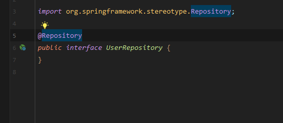 UserRepository๋ฅผ ๋ง๋ค๊ณ ์ด ์ธํฐํ์ด์ค๊ฐ Repository์์ ์๋ฆฌ๊ธฐ ์ํด์@Repository์ด๋ ธํ ์ด์ ์ ์ถ๊ฐํ๋ค.