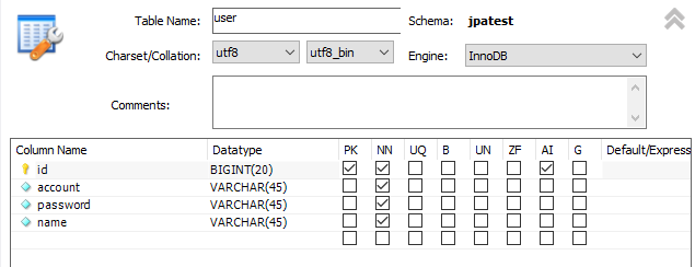๊ฐ๋จํ๊ฒ ์ด๋ฌํ ํด๋์ค๊ฐ ์๋ค๊ณ ๊ฐ์ ํ์ ๋, ์ด ํด๋์ค์ ์ ๋ณด๋ Mysql์๋ ๋๊ฐ์ด ์กด์ฌํด์ผ ํ๋ค.