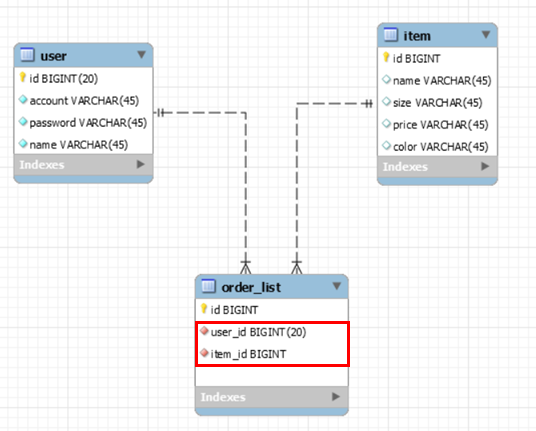 ์ฐ๊ด ๊ด๊ณ๋ฅผ ์ด์ฉํ๋ค๋ฉด user์ id๋ฅผ ์ธ๋ํค๋ก ๊ฐ๊ณ item์ id๋ฅผ ์ธ๋ํค๋ก ๊ฐ๋ ์๋ก์ด ํ ์ด๋ธ์ ๋ง๋ค์ด์ ์ด๋ฅผ ์ฌ์ฉํ๋ฉด ๋๋๋ฐ, ์ง๊ด์ ์ดํด๋ฅผ ์ํด ์ฐ๊ด ๊ด๊ณ๋ฅผ ์ฌ์ฉํ ๊ฒฝ์ฐ์ ์ฌ์ฉํ์ง ์์ ๊ฒฝ์ฐ๋ฅผ ๋น๊ตํด๋ณด์