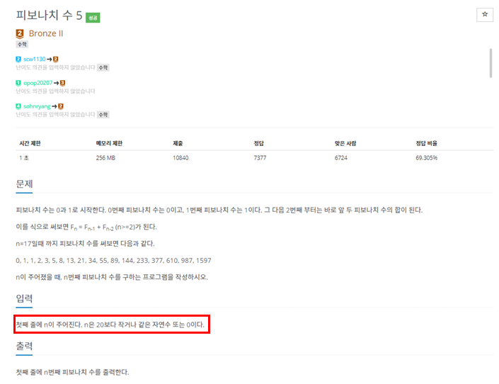 ๋ฐฑ์ค ๋ฌธ์ 10870 ์ ์ฌ๊ทํธ์ถ์ ์ด์ฉํด์ ํผ๋ณด๋์น ์์ด์ ์์ฑ์ํค๋ ๊ฒ์ด ๋ชฉ์ ์ธ๋ฐ ์๋์ ์ ๋ ฅ์ ์ ๋ด๋ณด์.