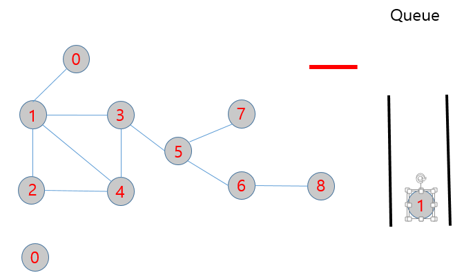0์ ์์๋ ธ๋๋ก ํ์ฌ ๊ทธ์ ์์์ธ 1์ enqueue ํ๋ค.