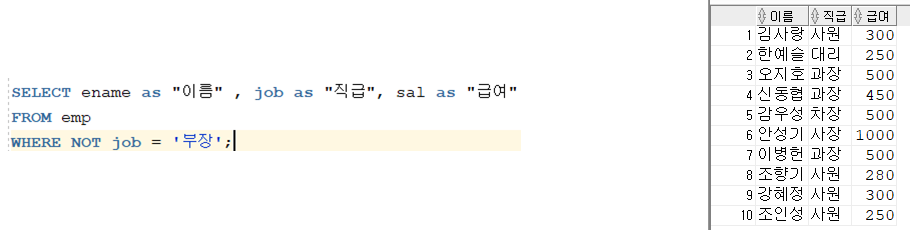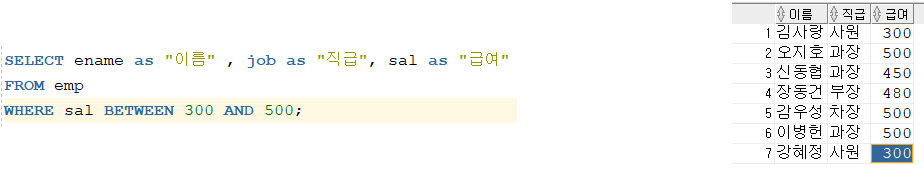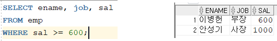 ์ด๋ค. ์ ์ ๋ฐฐ์ ๋ ๋ฐ์ดํฐ ๋ฒ ์ด์ค ํ ์ด๋ธ์์ ๊ธ์ฌ๊ฐ 500 ์ด์์ธ ์ฌ๋๋ค๋ง ์ถ๋ ฅ์์ผ ๋ณด์.