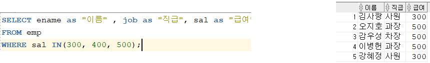 ๊ธ์ฌ๊ฐ 300, 400 500์ ํด๋นํ๋ ์ฌ๋๋ค์ ์ถ๋ ฅ์์ผ ๋ณด์.