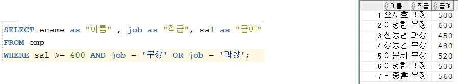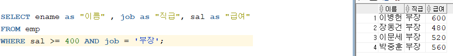 ์ด๋ค. ์ ์ ๋ฐฐ์ ๋ ๋ฐ์ดํฐ ๋ฒ ์ด์ค ํ ์ด๋ธ์์ ๊ธ์ฌ๊ฐ 500 ์ด์์ธ ์ฌ๋๋ค๋ง ์ถ๋ ฅ์์ผ ๋ณด์.