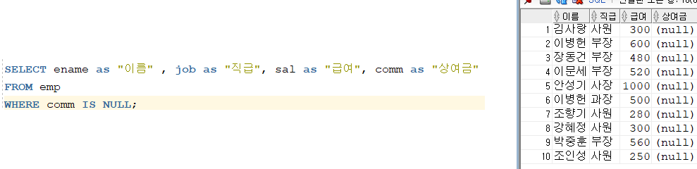 comm์ด null์ธ ์ฌ๋์ ์ฐพ์๋ผ