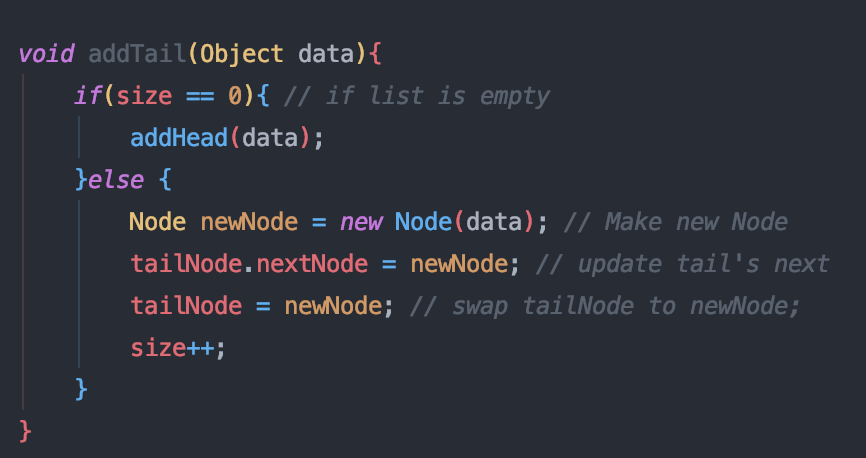 headNode = temp.nextNode; // headNode ๋ฅผ ๊ธฐ์กด์ ๋ ๋ฒ์จฐ ๋