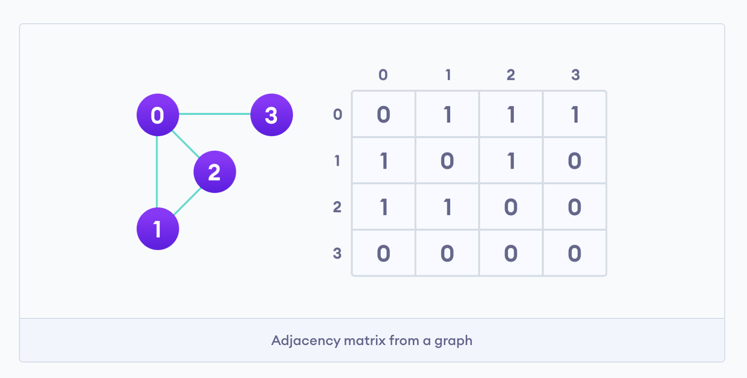 ํ๋ ฌ์ ์ํ๊ฐ์ด 1์ธ ๊ฒฝ์ฐ๋ ๊ทธ๋ํ๊ฐ ๊ฐ์ ์ ์ํด ์ฐ๊ฒฐ๋์ด ์์ ๋, ์ฆ i, j๊ฐ ๊ทธ๋ํ์ ์กด์ฌํ ๋๋ฅผ ๋ปํ๊ณ ๊ทธ๋ ์ง ์์ ๋๋ 0์ด๋ผ๊ณ ํํํ๋ค.