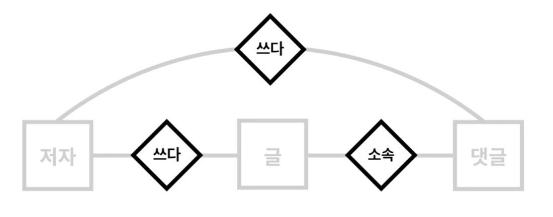 ์ด ๊ด๊ณ๋ฅผ ERD์์ ํํํ๊ณ ์ ํ๋ค๋ฉด ์๋์ ๊ฐ์ด ์ฌ์ฉํ ์ ์๋ค.