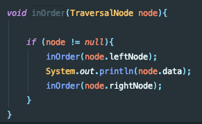 InOrder๊ฐ ์ผ์ชฝ ์์ ๋ ธ๋ ๋จผ์ ์ถ๋ ฅํ๊ณ ํ์ฌ ๋ ธ๋ ์ถ๋ ฅ ํ ์ค๋ฅธ์ชฝ ์์์ ์ถ๋ ฅํ๋ ๊ฒ์ด๋ ์์ ๊ฐ์ ์ฝ๋๊ฐ ๋์ฌ ์ ์๋ค.