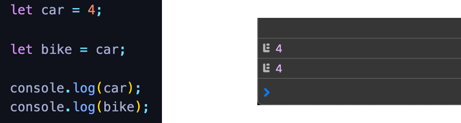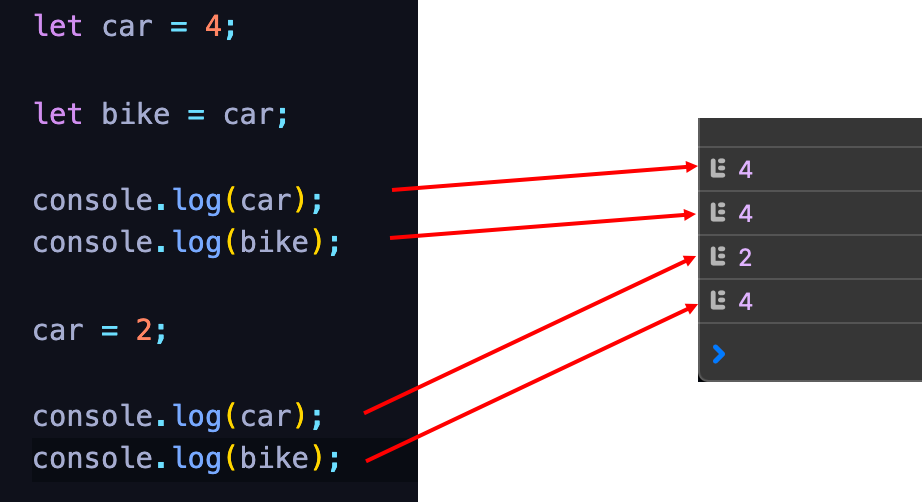μ΄λ¬ν μ½λκ° μμ λ μ°λ¦¬κ° μμμ μΌλ‘ car = 2λΌκ³ κ°μ λ³κ²½νλ€λ©΄ κ°μ μλ‘ λ€λ₯Έ κ°μ μ μ§ν μ μκ² λλ€.