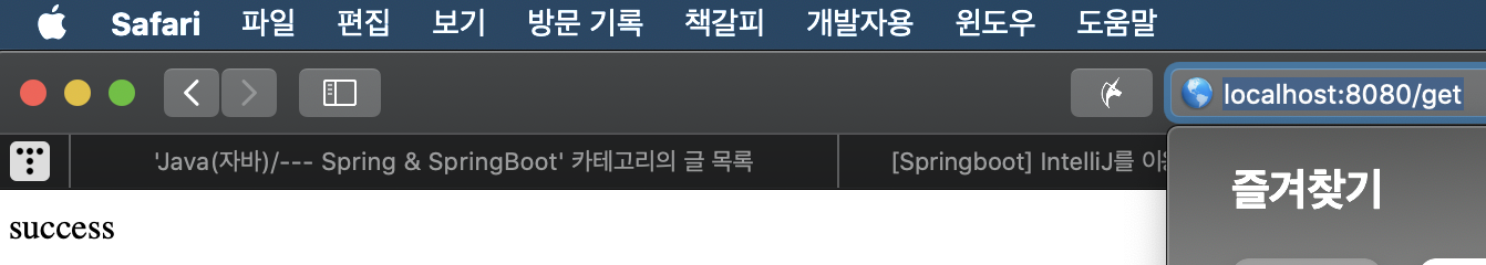 ๊ทธ๋ฆฌ๊ณ localhost:8080/get ์ด๋ผ๋ ๊ฒฝ๋ก๋ฅผ ์น ๋ธ๋ผ์ฐ์ ๋ฅผ ํตํด์ ๋ค์ด๊ฐ๋ฉด ๋ค์๊ณผ ๊ฐ์ด ์ฑ๊ณต์ ์ผ๋ก ๋์ํ ๊ฒ์ ์ ์ ์๋ค.