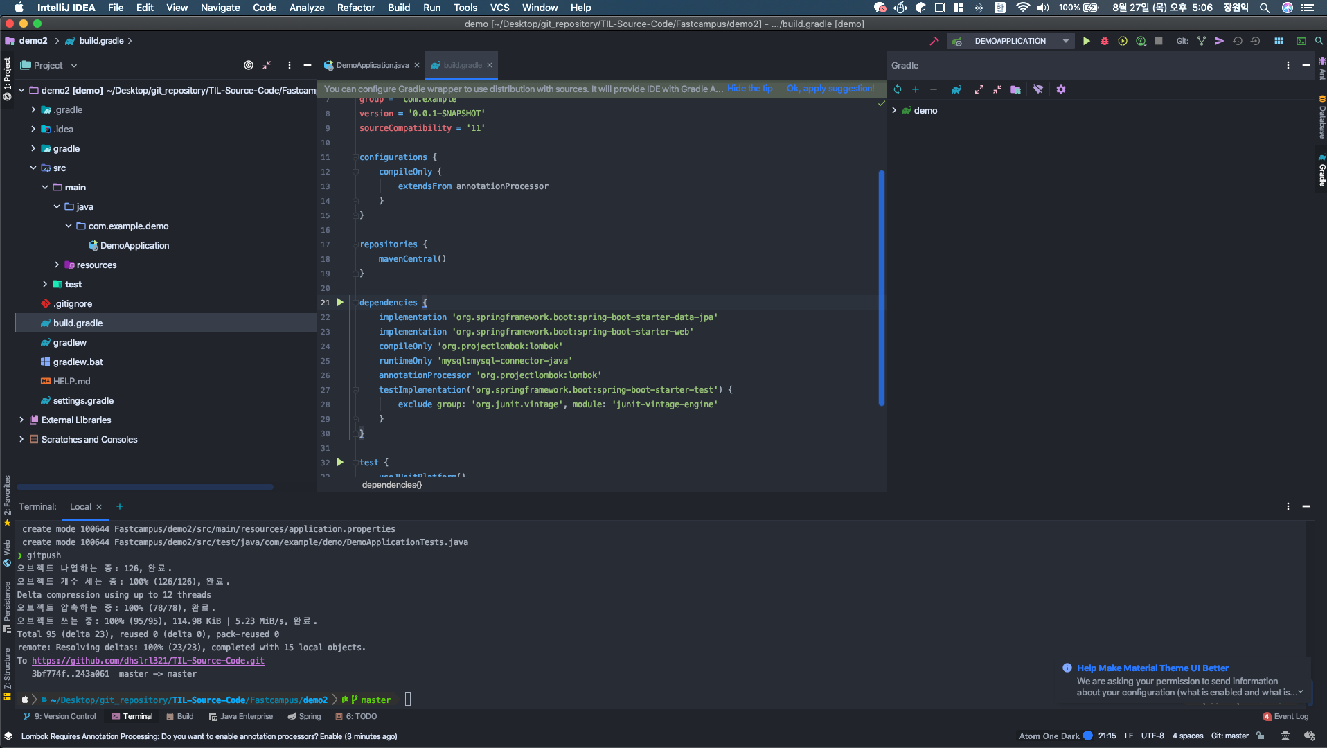 ๋ณธ ๊ธ์ Springboot์ Mysql + Jpa + Lombok ํ๋ก์ ํธ๋ฅผ ๊ตฌ์ฑํ๋ ๋ฐฉ๋ฒ์ ๋ํด์ ์์ฑํ ๊ธ์ ๋๋ค.