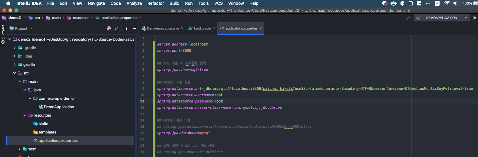 - spring.datasource.url : ๋ฐ์ดํฐ๋ฒ ์ด์ค url