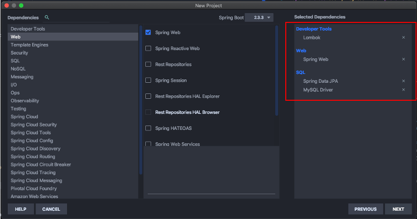 ์ง์ Springboot ํ์ด์ง์์ ์์ฑํ ์๋ ์์ง๋ง ์ฐ๋ฆฌ๋ IDE ์์ฒด์ Spring Initializer์ ํตํด์ ์์ฑํ๋ค.
