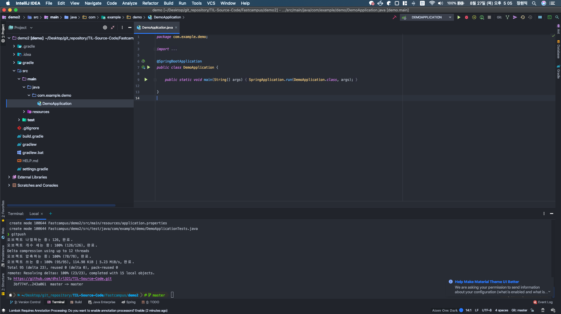์ด๋ ๊ฒ ์ค๋์ IntelliJ์์ ์คํ๋ง๋ถํธ + ๋ฐ์ดํฐ๋ฒ ์ด์ค(Mysql) + ๋กฌ๋ณต์ ์ฐ๊ฒฐํ์ฌ ์น ํต์ ์ ๋ํด ๊ฐ์ ์ ์ผ๋ก ์์๋ณด์๋ค.