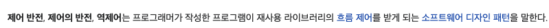 ์ํคํผ๋์์์๋ ์ ์ด์ ์ญ์ ์ ๋ฐ๋ก ํ๋ก๊ทธ๋๋จธ๊ฐ ์์ฑํ ํ๋ก๊ทธ๋จ์ด ์ฌ์ฌ์ฉ ๋ผ์ด๋ธ๋ฌ๋ฆฌ์ ํ๋ฆ ์ ์ด๋ฅผ ๋ฐ๊ฒ ๋๋ ์ํํธ์จ์ด ๋์์ธ ํจํด