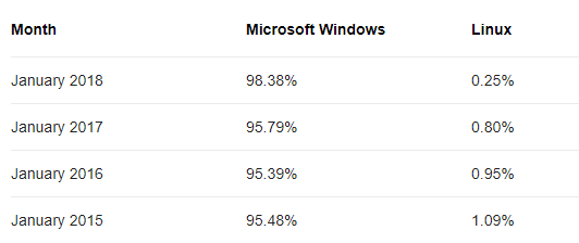 μλ μλμ° μλ²μ 리λ μ€ μλ²μ μ¬μ©λμ λν ν΅κ³μ΄λ€.