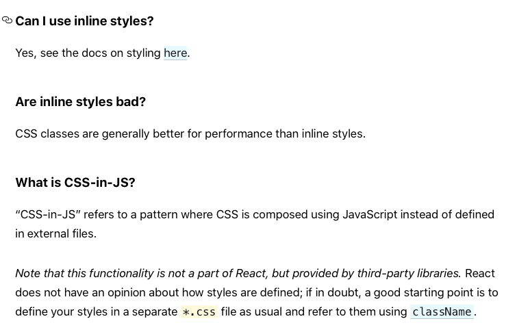 ํ์ง๋ง ์ ์ด๋ React์์๋ ์ปดํฌ๋ํธ๋ฅผ ์คํ์ผ๋ํ๋ ๋ฐฉ๋ฒ์ ๋ค๋ฅธ ๋๊ตฌ๋ฅผ ์ฌ์ฉํ๋ ๋ฐฉ๋ฒ์ด ๋์ฑ ์ถ์ฒ๋๋ค.