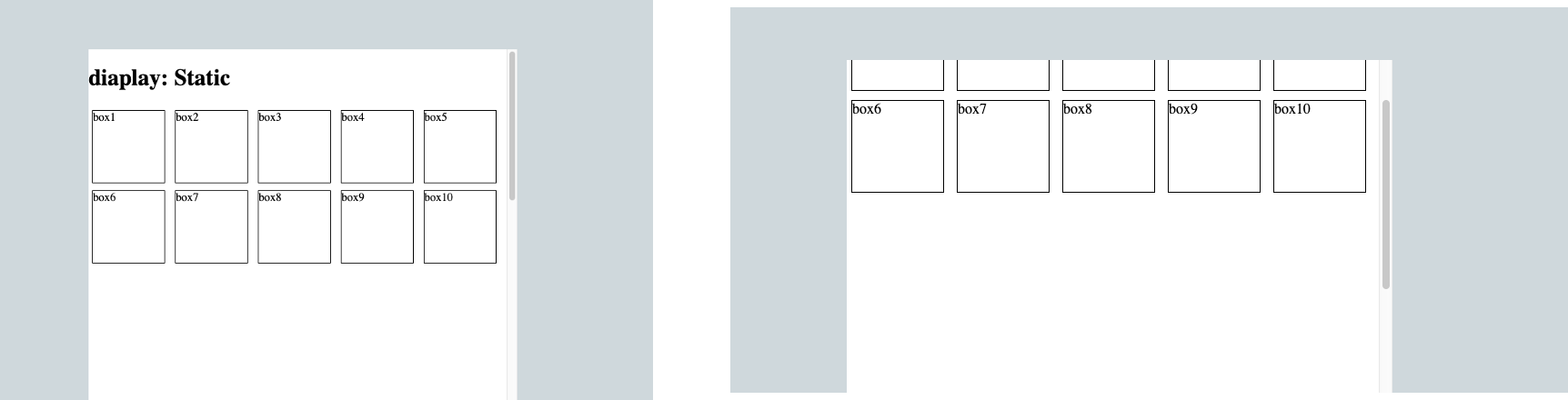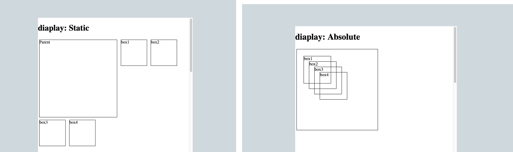 ์ค๋ฅธ์ชฝ์ position: relative์ด๊ณ ์ผ์ชฝ์ position: static์ด๋ค.