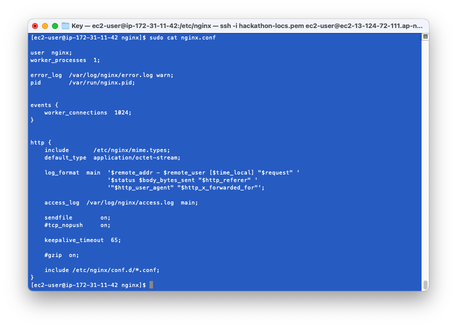 ๋ น์ด๋ก nginx.conf ํ์ผ์ ์ด์ด๋ณด์.
