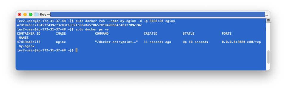 > $ docker run --name my-nginx -d -p 8080:80 nginx