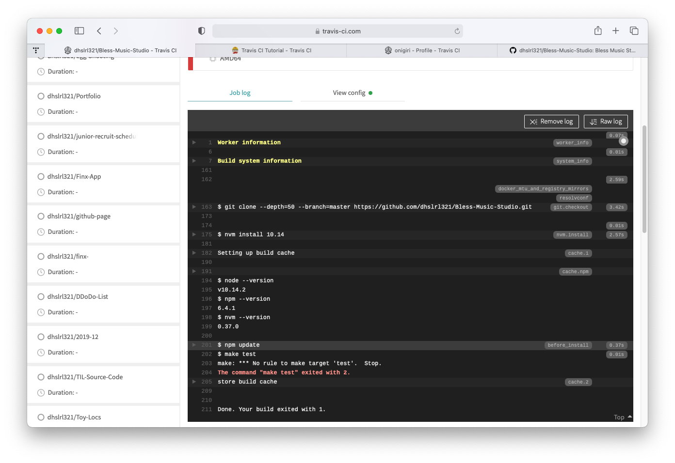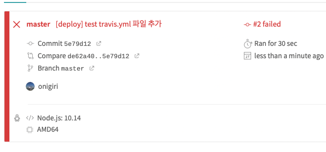 travis.yml์ ์ฐ๋ฆฌ๊ฐ ๋ญ ํด์ค์ง ์ ์ ์ด์ ์คํจํ ๊ฒฝ์ฐ์ด๋ค.
