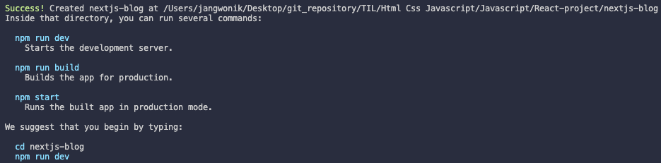 ์์ ๋ฐฉ๋ฒ์ผ๋ก ํ๋ก์ ํธ๋ฅผ ์์ฑํ๋ค๋ฉด ์๋ง nextjs-blog ๋ผ๋ ์ด๋ฆ์ ๋๋ ํ ๋ฆฌ๊ฐ ์์ฑ๋์์ ๊ฒ์ด๋ค.