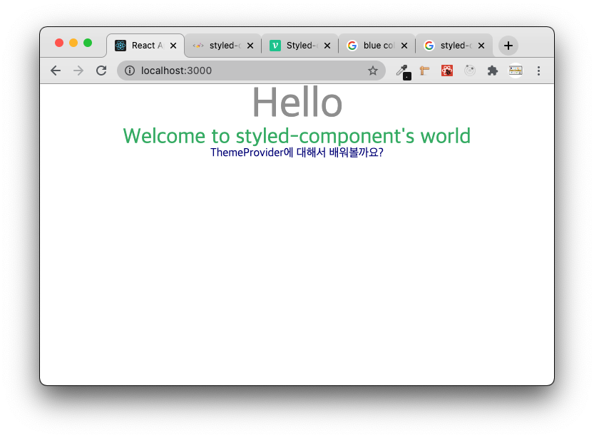 ๊ทธ๋ฆฌ๊ณ ์ํํ๋ค๋ฉด ThemeProvider๋ฅผ ์ฌ์ฉํ ์ปดํฌ๋ํธ๋ฅผ ๋ง๋ค ์ ์๊ฒ ๋๋ค.