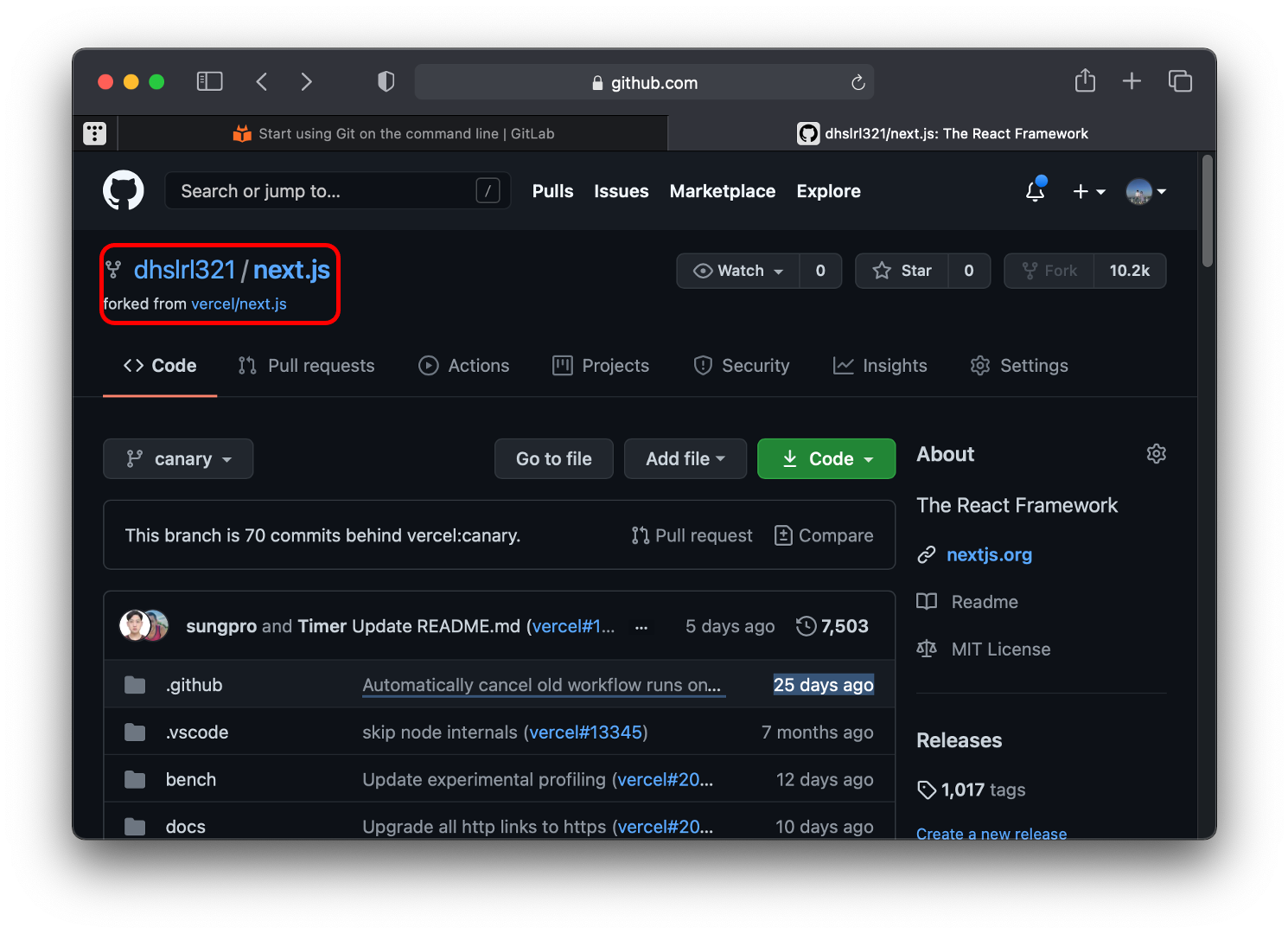 ์คํ์์ค ํ๋ก์ ํธ๊ฐ ์๋ ๋ฉ์ธ ์ ์ฅ์๋ฅผ ๋ด ์ ์ฅ์๋ก fork ํด์ผํ๋ค.
