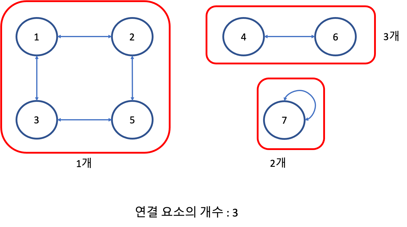 ์ฌ๊ธฐ์ ๋ฌธ์ ๋ ์์์ ์ฐพ์ ์ฐ๊ฒฐ ์์์ ๊ฐ์๋ฅผ ์ฐพ๋ ๊ฒ์ด๋ค.