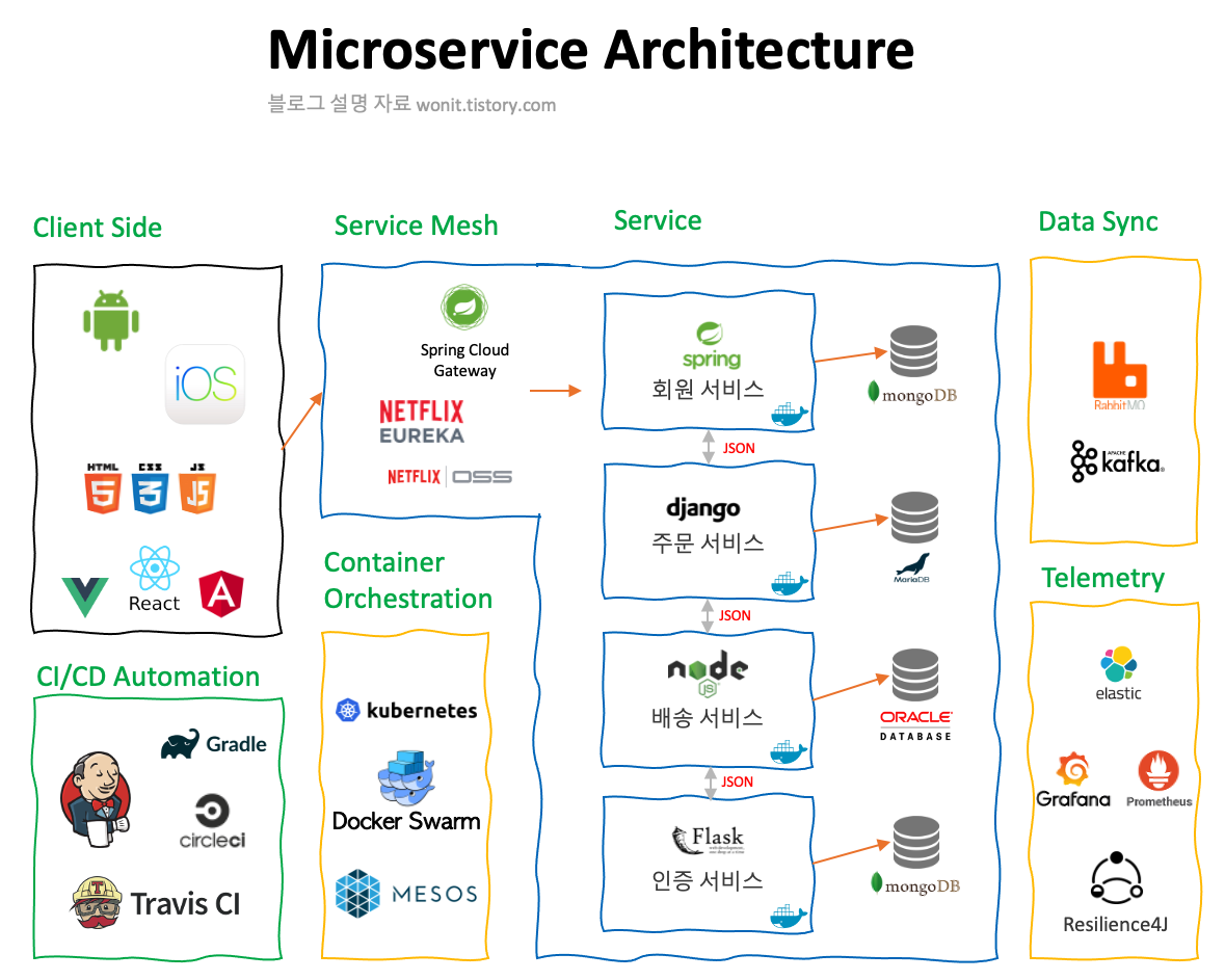 ๋ชจ๋๋ฆฌ์ค ์ํคํ ์ฒ๋ ๊ทธ๋ฆผ์์ ๋ณด๋ค์ถ์ด ํ๋์ ์๋ฒ์ ๋ค์ํ ๊ธฐ๋ฅ์ด ์์นํด์๋ ์ํคํ ์ฒ์ด๋ค.