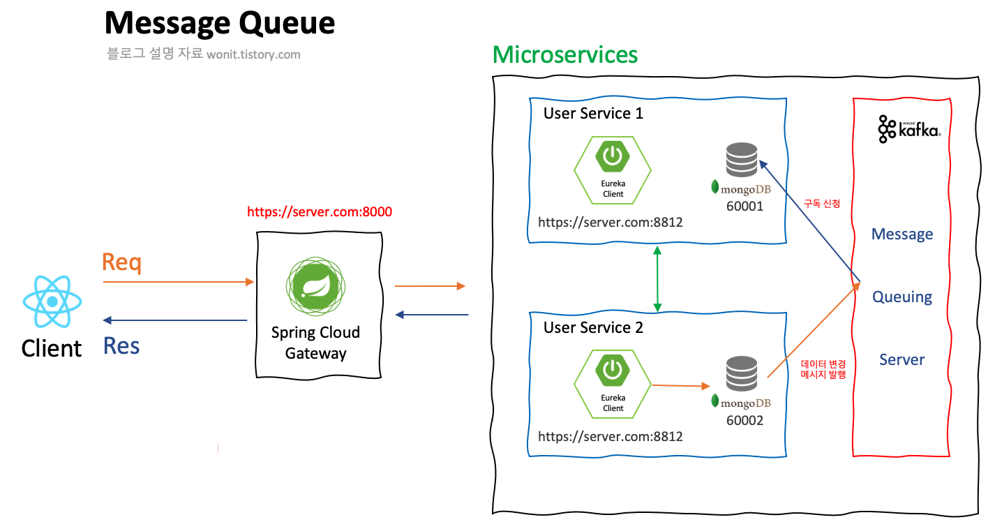๋ง์ดํฌ๋ก์๋น์ค ๊ตฌ์กฐ์์ ์ธ์คํด์ค๊ฐ ํ์ฅ๋๋๋ผ๋ ๋ถ์ฐ ์์คํ ๋ฐ ๋ฐ์ดํฐ์ ๋๊ธฐํ ๋ฌธ์ ๋ฅผ ๊ฐ๋จํ๊ฒ ํด๊ฒฐํ ์ ์๋๋ก ํ๋ ๋ฉ์์ง ๋๊ธฐ์ด ๋ฏธ๋ค์จ์ด์ด๋ค.