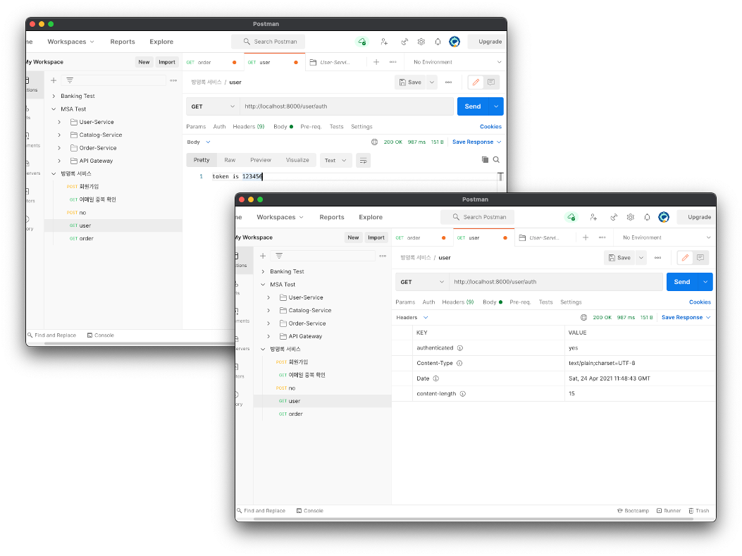 ๊ทธ๋ฆฌ๊ณ ๊ฐ๊ฐ์ User, Order ์๋น์ค๋ก ๋์๊ฐ์ RequestMapping ๋ถ๋ถ์ /user