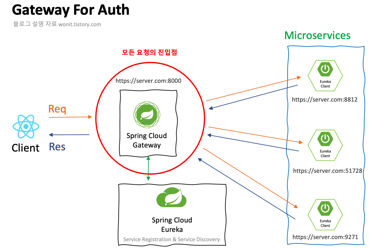 ์์์ ๋ณธ๋ค๋ฉด ๋น์ฐํ๊ฒ ๋ชจ๋ ์์ฒญ์ด Gateway๋ก ๋ชฐ๋ฆฌ๊ฒ ๋๋ค.