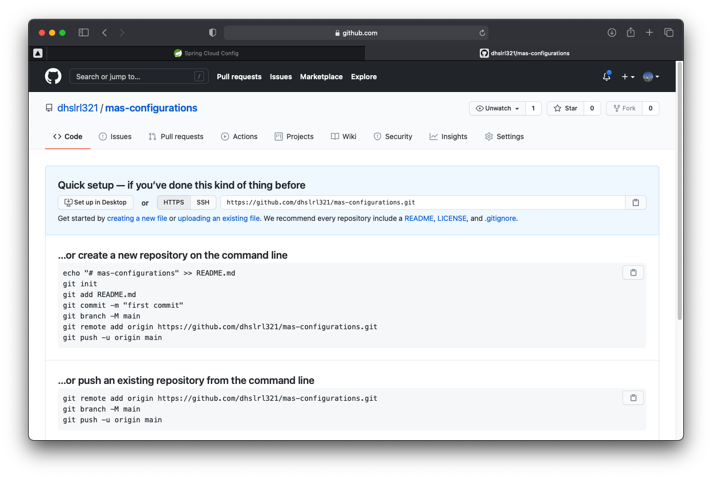 ์ด์ Config Server ์์ ์ฐ๋ฆฌ์ ์ค์ ์ ๋ณด๋ค์ด ์ ์ฅ๋ ์ ์ฅ์์ ์ฐ๊ฒฐ์ ํด๋ณด์.