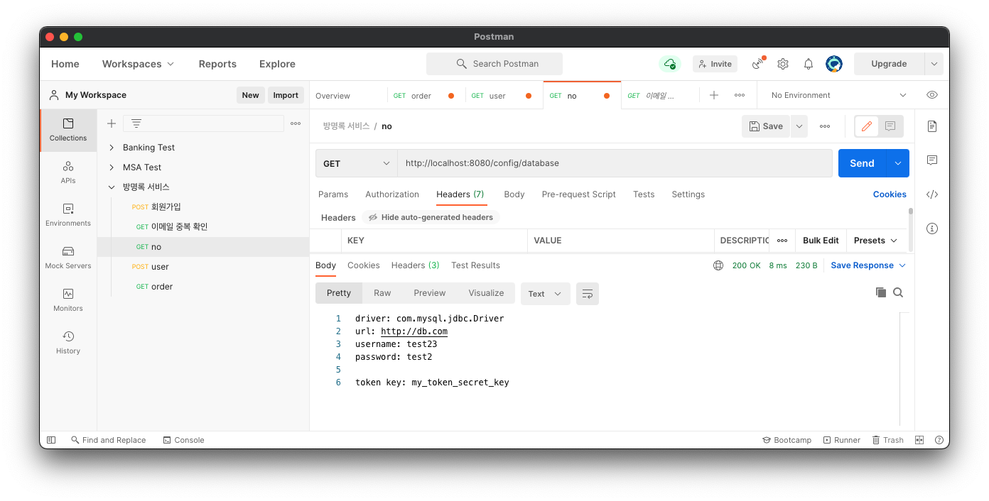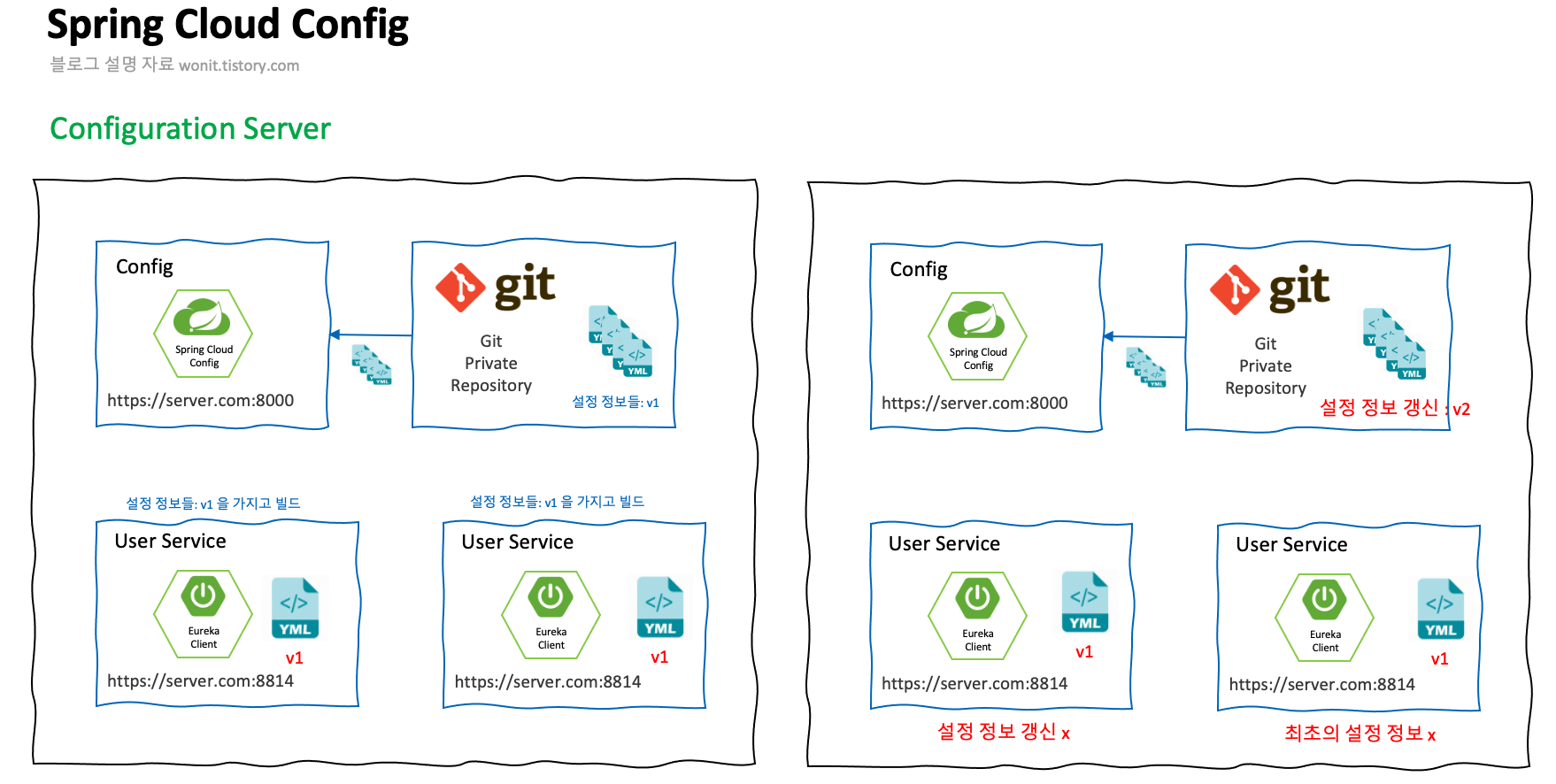 ์ง๋ ์๊ฐ ํ๊ฒฝ ์ค์ ์ ๋ฐ๋ผ์๋ค๋ฉด ๋ฌธ์ ๊ฐ ์๊ฒ ์ง๋ง ๋ค์ ํ ๋ฒ ์ธ๋ถ ์ค์ ๊ด๋ฆฌ๋ฅผ ์ํ Config ์๋ฒ์ ์ฃผ์๋ ์ ์ด๋ณด์.