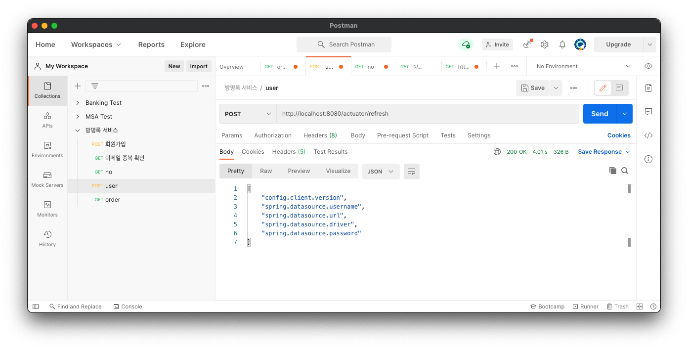 ์ด ๋, Configuration ์ ๋ณด๋ง refresh ํ๋ Actuator์ Refresh ํธ์ถ์ POST๋ก ๋ณด๋ด๋ณด์.