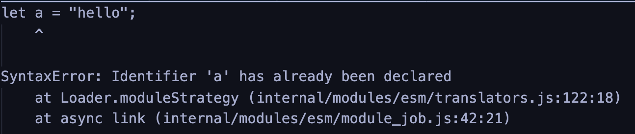 ์ฐ๋ฆฌ๊ฐ ์ฐ๋ คํ๋ ๋ณ์์ ์ค๋ณต ์ ์ธ์ Identifier 'a' has already been declared ๋ก ๋ง์์ค๋ค.