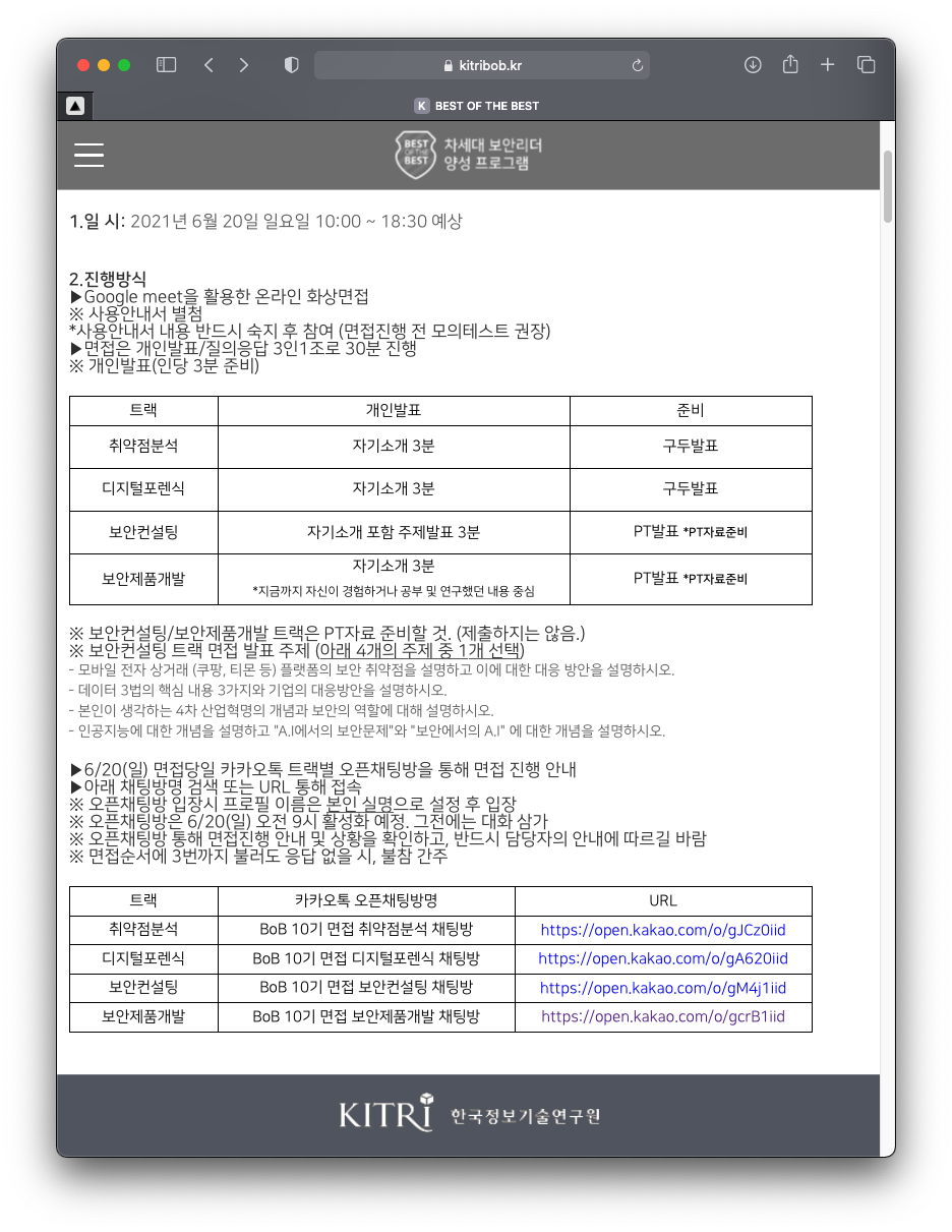 BoB ๋ฉด์ ์ ์๋ฐ ๋ฉด์ ์ผ๋ก ์ ๋ช ํ๋ค.