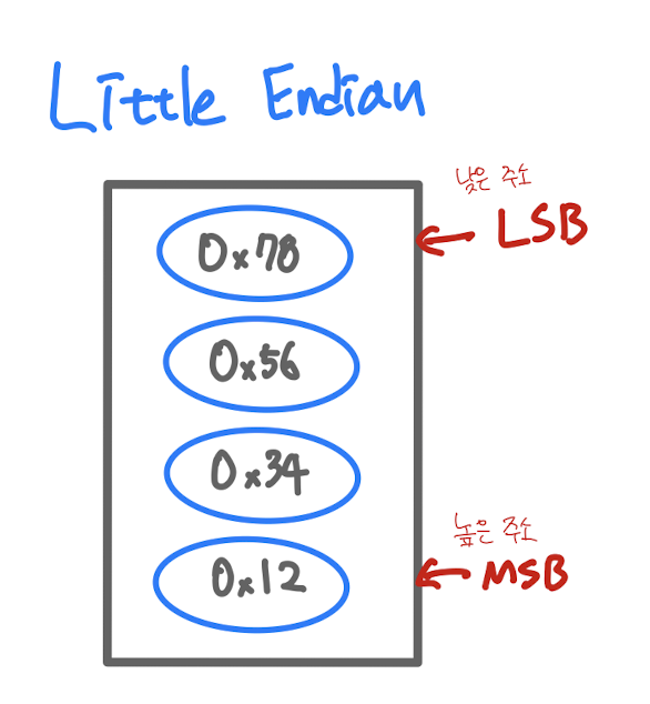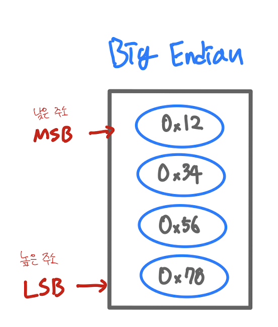 ๋ฎ์ ์ฃผ์์ ๋ฐ์ดํฐ๋ฅผ ๋์ ๋นํธ(MSB, Most Significant Bit) ๋ถํฐ ์ ์ฅํ๋ ๋ฐฉ์