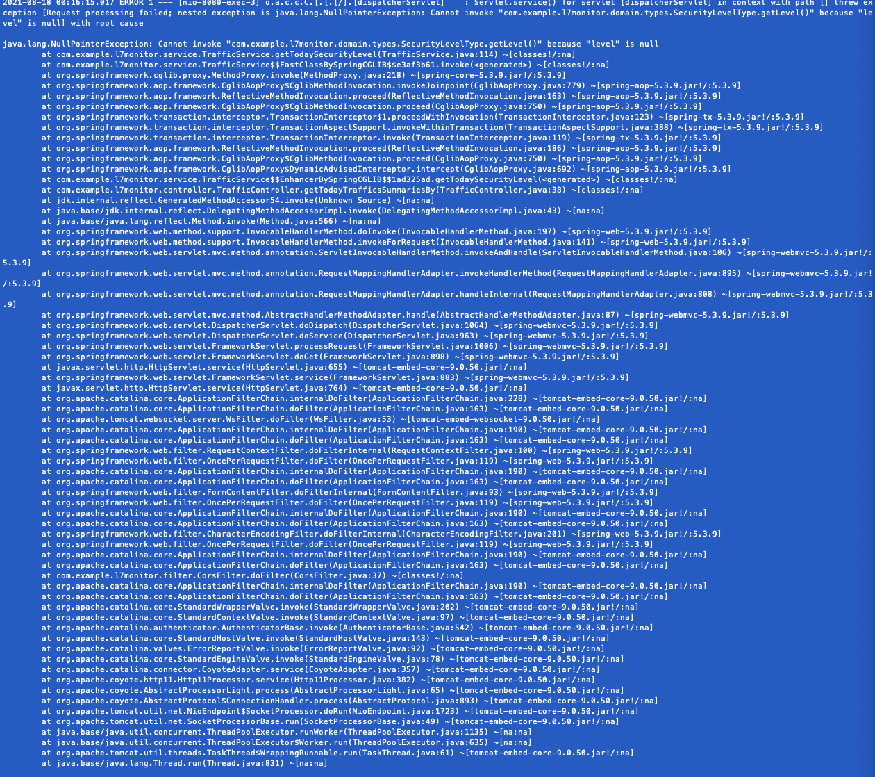๊ทธ๋ฆฌ๊ณ Controller ์์ ์ ๊ณตํ๋ API ์ค ํ๋๊ฐ ํ์ฌ ์๊ฐ์ ๊ธฐ์ค์ผ๋ก -24์๊ฐ ๊น์ง์ ํน์ ๋ฐ์ดํฐ๋ฅผ ๋ถ๋ฌ์ค๊ฒ ๋๋๋ฐ, ๋ง์ฝ ๋ฐ์ดํฐ๊ฐ ์์ผ๋ฉด ์์ธ๋ฅผ ๋ฐ์์ํจ๋ค.
