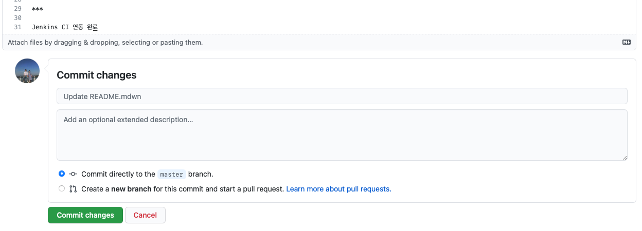 Github์ Code Push๋ฅผ ํ๊ณ , Jenkins์์ ํด๋น ๋ณ๊ฒฝ์ฌํญ์ ์ ๋ฐ์์ค๋ฉด ์ฑ๊ณต์ ์ผ๋ก ์ฐ๊ฒฐ๋ ๊ฒ์ด๋ค