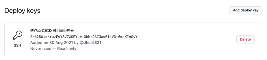 ๊ทธ๋ผ ๋ค์๊ณผ ๊ฐ์ด Deploy Keys ๊ฐ ์์ฑ๋๋ค!