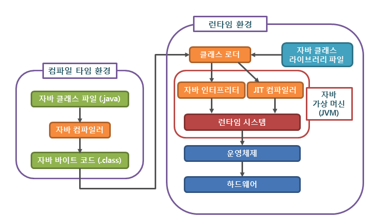 μ£Όμν΄μΌ ν μ μ΄ μ»΄νμΌ κ²°κ³Ό λΌκ³ ν΄μ Cλ C++μ΄ μ»΄νμΌνλ©΄ μμ±νλ κΈ°κ³μ΄μ λμΌνκ² μκ°νλ©΄ μλλ€. κΈ°κ³μ΄λ JVMμ΄ λ€λ₯Έ λͺ¨λμ ν΅ν΄μ μμ±νκ³ μ€ννλλ°, μ΄ κ³Όμ μμ Cλ C++μ λΉν΄ μ‘°κΈ λλ¦° μ±λ₯μ λ΄λ κ²μ΄λ€.
