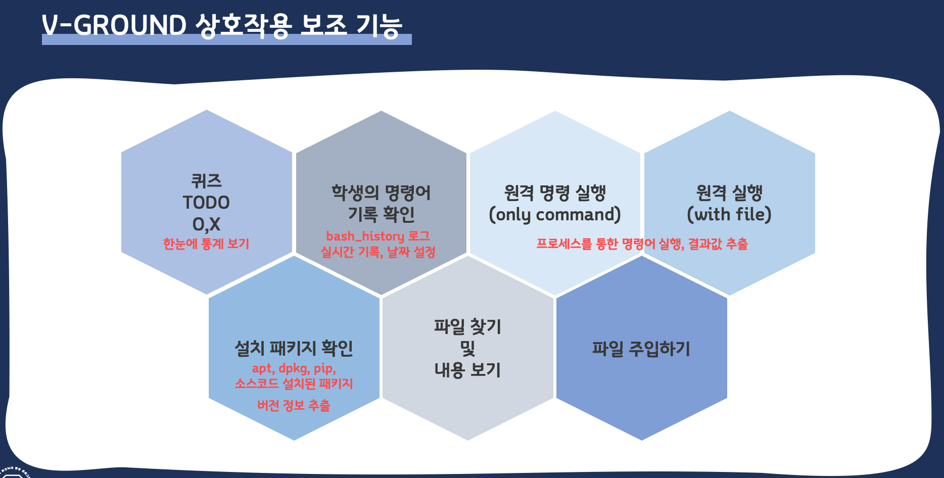 위의 그림처럼 강사는 학생들의 명령어 기록을 확인할 수 있고 원격 명령을 실행하거나 설치된 패키지를 확인하고 특정 파일을 컨테이너 내부로 주입하는 등 다양한 활동을 플랫폼 내부에서 수행할 수 있게 된다.
