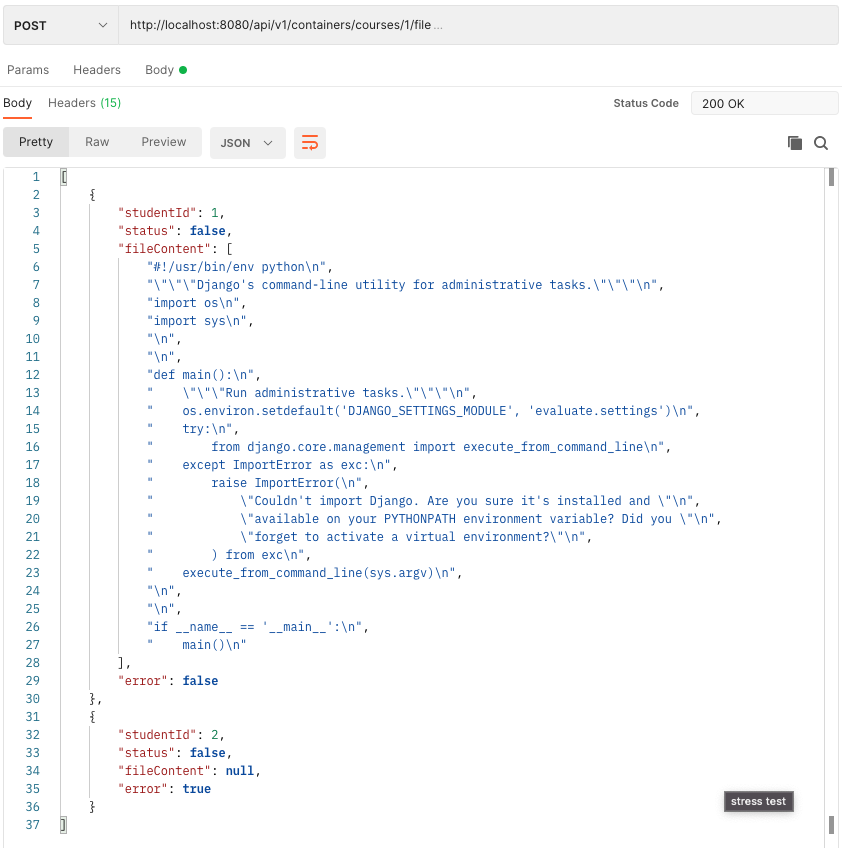 getCourseUserFroomIds() 를 통해 특정 course 에 소속된 모든 학생의 Container IP 정보들을 받아온다.