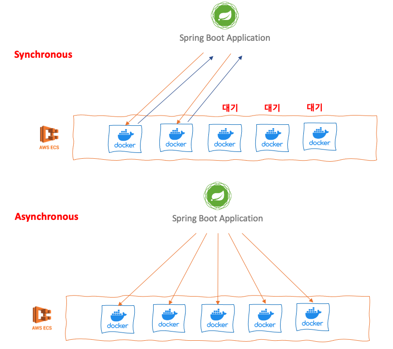 이때 40대의 요청을 synchronous 하게 보낸다면 40대의 요청이 모두 성공될 때 까지 대기해야 한다.